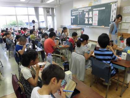 むし歯のでき方を知り、実際に自分の歯ブラシで歯を磨く練習をしました。