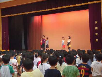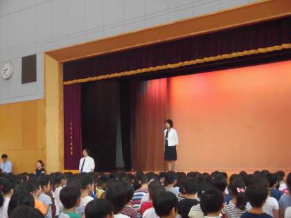 1年生の代表児童が、1学期にがんばったことを話しました。