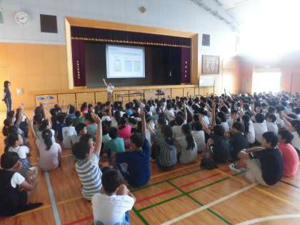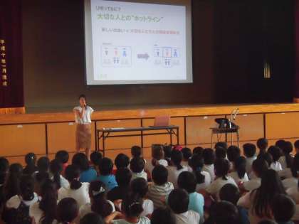 高学年のセーフティ教室は「LINE株式会社」の方をゲストティーチャーに招き、インターネットを使うときの注意について教えていただきました。
