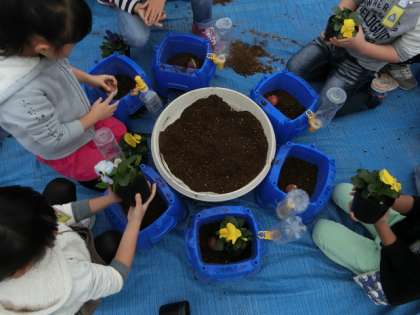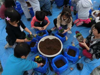 本日、生活科の時間に、パンジーの苗とチューリップの球根を植えました。「何色のチューリップが咲くのかな?」と嬉しそうに水をあげていました。
