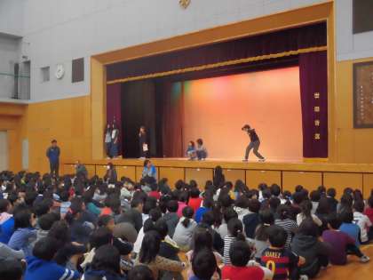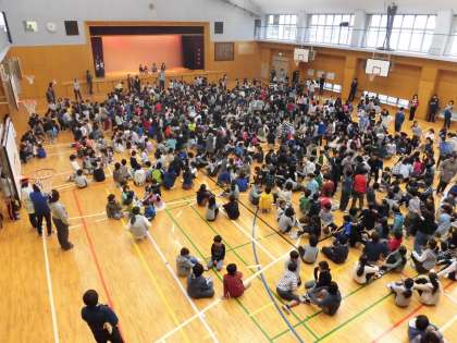 本日の朝の活動は、児童集会でした。「猛獣狩り」というゲームで、倒しに行く猛獣の文字数だけ仲間を集めるというものです。「あと2人こっちに来て。」など声を掛け合いながら、異学年の仲間作りが自然とできて、楽しい時間を過ごすことができました。