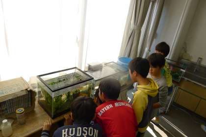 他のクラスでもメダカ、グッピー、ヌマエビなどを飼育しています。