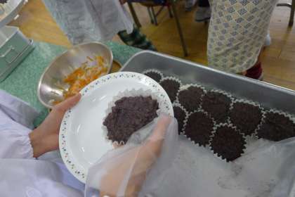あんこもちには秋に5年生が収穫したもち米が使われていました。