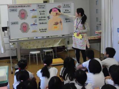 本日1〜4時間目、3年生が3学期の身長・体重計測を行いました。また、「よくかむことの大切さ」について学びました。