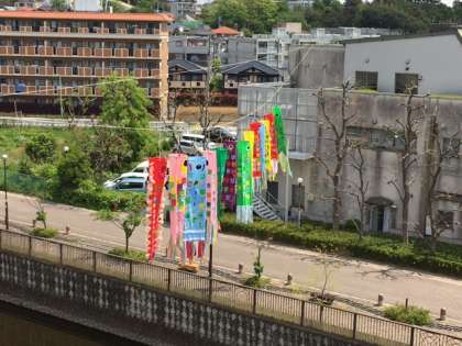 1,2年生が作った鯉のぼりが今年も仙川の上を泳いでいます。4月半ばにパパースや児童館の方々がワイヤーを張ってくださり、先週の27日より鯉のぼりが泳ぎはじめました。下校の時間に空に泳ぐ鯉のぼりを見て、子どもたちは歓声を上げていました。鯉のぼりの制作や掲揚にご協力をいただきましたPTAの皆さん、パパースの皆さん、児童館の皆さん、ありがとうございました。5月5日「こどもの日スペシャル」のイベントも楽しみですね。