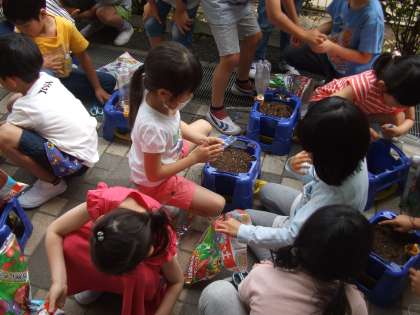 土を入れるところから、水やりまで2人3脚で進めた1時間。みんながあさがおの成長を楽しみにしていることでしょう。