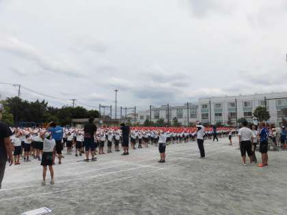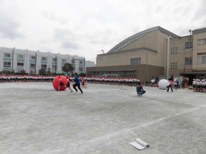 開閉開式や準備運動、整理運動、全校競技の大玉送りの練習などを行いました。