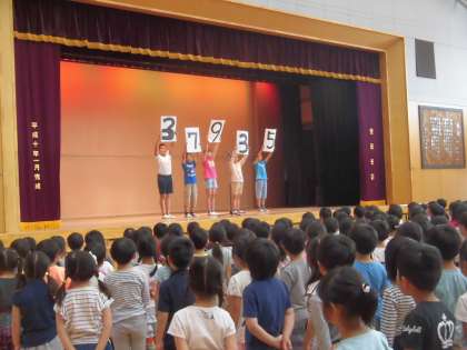 本日の全校朝会では、栽培委員会の子どもたちが、5月に行った緑の募金のお礼と集まったお金について報告しました。3日間で37935円集まりました。このお金は、地域や学校の緑を増やすために使われます。ご協力ありがとうございました。