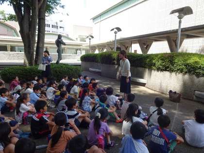 色彩豊かなエリックカールの作品を、子どもたちは目を輝かせながら見入っていました。他にも、普段入ることができない創作室に入れていただいたり、鑑賞マナーについて学んだりしました。美術館の職員の皆様、ボランティアで解説をしてくださった方々、ありがとうございました。