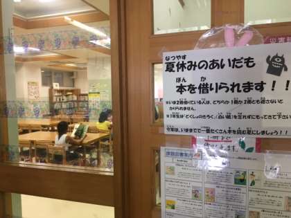 夏季水泳指導の期間は図書ラウンジもオープンしています。午前中は夏季水泳の前後に子どもだけでの利用もOKですが、午後は保護者と一緒に利用となります。水泳が終わった後のひとときを図書ラウンジで過ごす子もいます。運動の後の読書タイムもすてきですね。ぜひ利用してください。なお、夏季水泳指導期間(8月25日まで)が終わりますと、2学期までは閉館となります。よろしくお願いします。