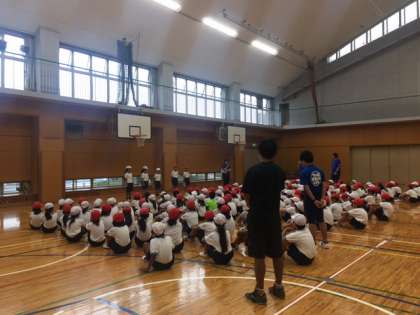 今週で水泳指導が終了となります。今日は、3年生と4年生の水泳の授業の最後の日でしたが、朝から天候が悪く、プールには入れませんでした。そこで、両学年とも体育館でプール納めの会を行いました。代表児童が今シーズンの振り返りを発表しました。めあてを達成できた子も、あともう少しだった子もいたようです。でも、皆、元気に楽しく水泳の学習を頑張り、泳力を伸ばすことができたようです。来年も頑張りましょう。
