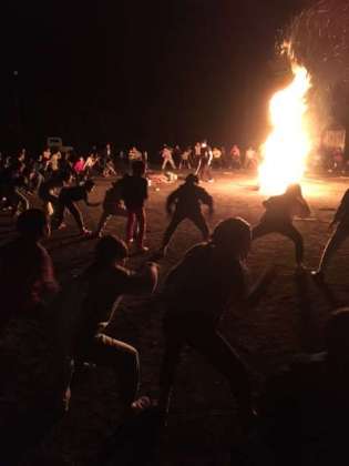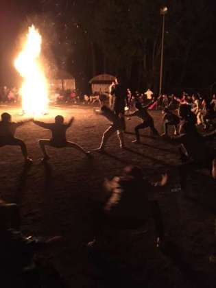 火の精たちが点火し、始まりました。ソーラン節やゲーム、ホークダンスなどを行い大変盛り上がっています。