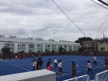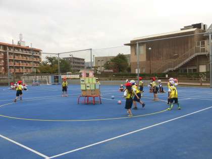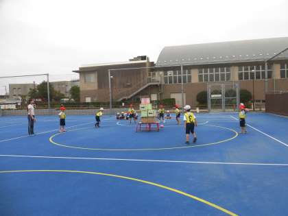今日は、第2校庭で1年生が体育(ボール投げゲーム)を行い、5年生は中休みに長縄跳びなどを楽しんでいました。