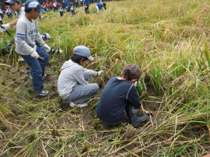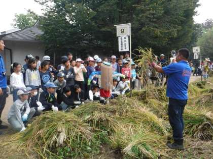 昨日、次大夫堀公園にて、5年生が稲刈り体験を行いました。