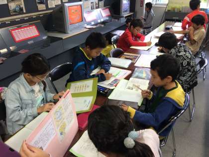 第一部では、世田谷の郷土資料室で調べ学習を行いました。それぞれが世田谷の地勢、生物、文化、生活、交通、公共機関のジャンルに別れ、調べたい課題にそって学習を行いました。