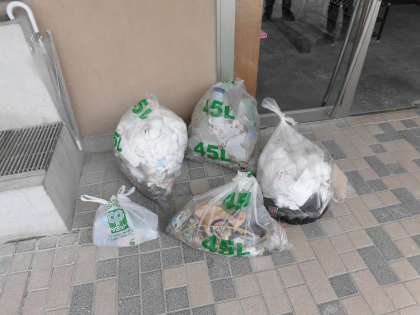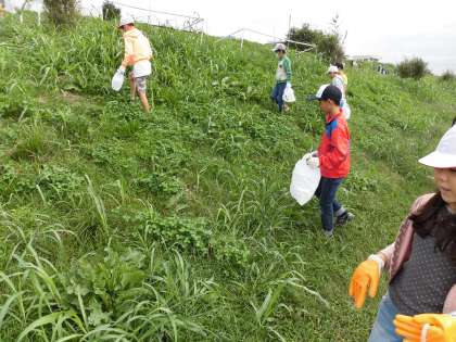 多摩川の河川敷へ、ごみ清掃に行きました。河川敷を歩いてみると様々なごみが落ちていることに気がつきました。集めたごみは、可燃ごみ、不燃ごみ、資源に分別して学校へ持ち帰りました。