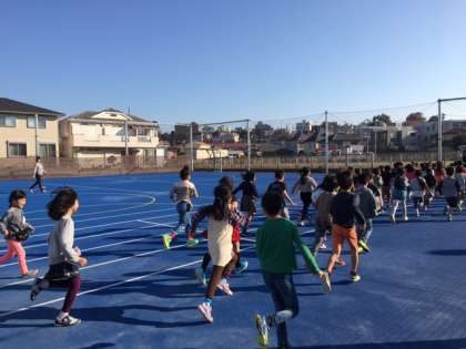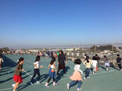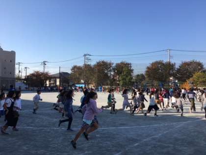 毎週火曜日はランランタイムの日です。体力向上をめざして、朝の時間を使って全校で走っています。今日は1,3,5年生の日で、校庭、第二校庭、屋上を使い、皆で走りました。秋晴れの気持ちよい青空の下で、子どもたちは皆頑張って走っていました。