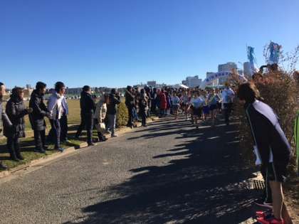 昨日、多摩川の河川敷で世田谷区子ども駅伝大会が開催されました。砧南小の5,6年生の児童の有志が砧南中学校の生徒と一緒にチームを組んで、駅伝大会に出場しました。中学生も交えた10人で3チームが参加し、他のチームと競い合いました。強風が吹く青空の下で、子どもたちは一生懸命走り、健闘しました。応援の保護者の皆さん、ありがとうございました。