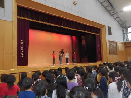 校長先生からのお話の後、4年生の代表児童が、2学期に頑張ったことや3学期に頑張りたいことを堂々と発表しました。