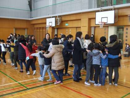 また、5校時は、2年生全員とたくさんの保護者を交えて学年集会を行いました。この日に向けて、各クラス2名・計10名の実行委員が、計画・準備・進行を頑張りました。ゲームでは、みんなでじゃんけん列車・猛獣狩りに行こうよ・輪くぐりを楽しく行うことができました。また、最後の日本語朝会発表では、子どもたちの元気な発表をご覧いただけたと思います。