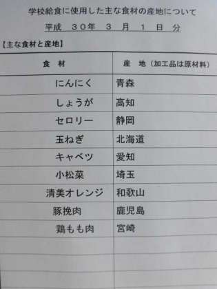 3月1日の給食