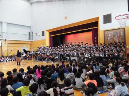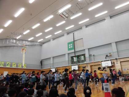 4,5年生の出し物のプレゼントと、6年生からお礼の合奏の様子です。