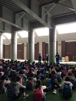 予定より少し早く「なかのビレジ」に着き、屋根付き広場で開室式を行いました。