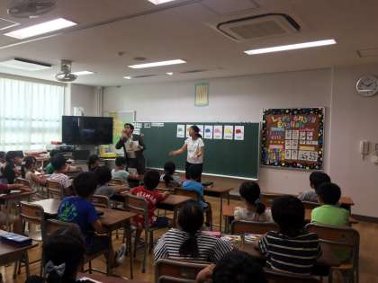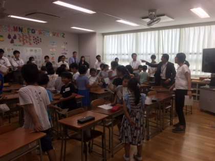7月3日に、世田谷区の英語担当教員を対象にした研修会が、砧南小で行われました。区内の教員が集まり、本校の3年生の英語の授業を参観し、それを基に研修しました。「I like 〜 」のフレーズをテーマに、3年担任とALTがTTで授業を行い、子どもたちも楽しく学んでいました。英語の授業力の向上を区全体でめざしています。