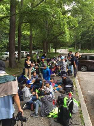 湯滝でグループ写真を撮った後、トイレ休憩をしました。