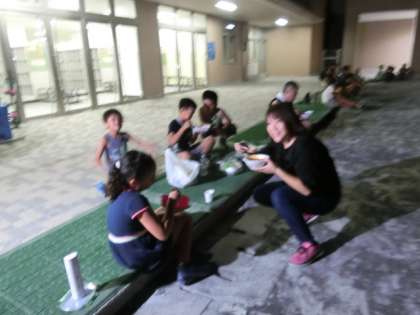 夕ご飯は、用意していただいたアルファ米に、子どもたちが家から持ってきたレトルトのカレーなどをかけて食べました。