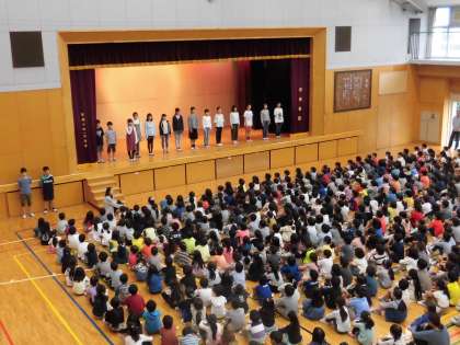 6年生の委員長が、委員会の活動内容や、みんなへのお願いを発表します。