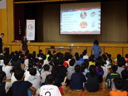 6年生はその一環として、アメリカ大使館から講師の方をお招きして、日米交流を行いました。