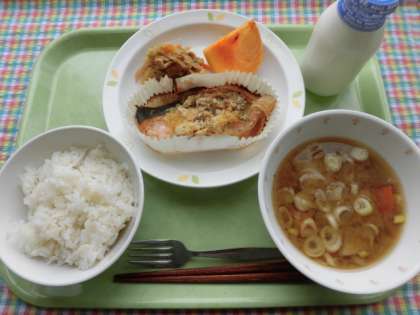 ○鮭のみそマヨネーズ焼き(鮭に玉葱、マッシュルーム、牛乳、マヨネーズ、みそを入れ、パン粉をふり、オーブンで焼きます。)
