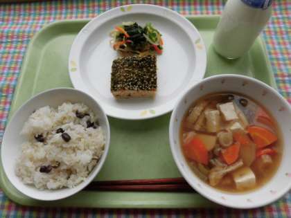 23日は新嘗祭(五穀豊穣)24日は「和食の日」この日にちなんで、給食では和食でお祝いします。和食はユネスコ無形文化遺産に登録されています。