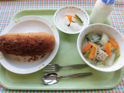 ○白菜と肉団子のスープ煮・・・教室から「団子と白菜がマッチしていて、まろやかな味でした。」と、教えてくれました。