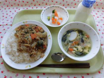 今日は韓国料理です。トックスープは日本の雑煮のようなものです。韓国では餅のことを「トック」といいます。もち米やうるち米で作ります。子どもたちから「おいしい」の声が聞かれました。