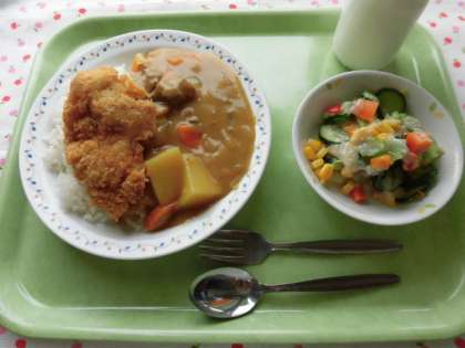 いよいよ明日は運動会です。給食では応援メニューとしてカツカレーを作りました。児童からは「とてもおいしくって、元気が出たよー!」の声が聞かれました。