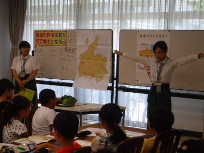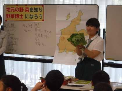 旬の野菜についての説明や、バランスのとれた食事について学習しました。