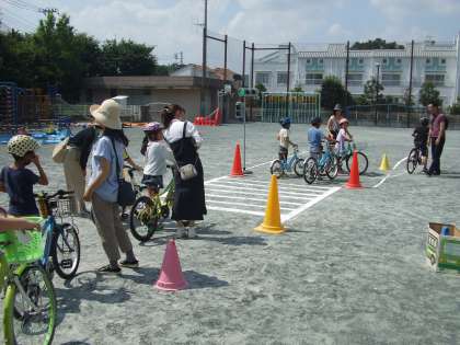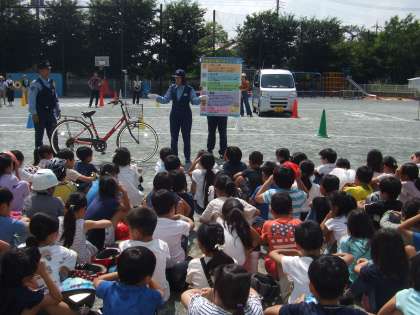 本日の5・6校時に自転車安全教室を行いました。校庭では、成城警察の方に乗る前の点検の仕方、自転車の安全な乗り方や走り方についてご指導いただきました。また、ランチルームでは、コヤマドライビングスクールの方に、道路で走る際の交通ルールなど教えていただきました。最後に、各クラスの代表児童が受講証を受け取り、2時間にわたる講習会を終えました。今日から一人で自転車に乗れることになりましたが、教えていただいたことを守りながら、被害者にも加害者にもならないように気を付けて、自転車を利用してほしいです。最後になりましたが、暑い中、たくさんの保護者の皆さんにお手伝いいただきましてありがとうございました。