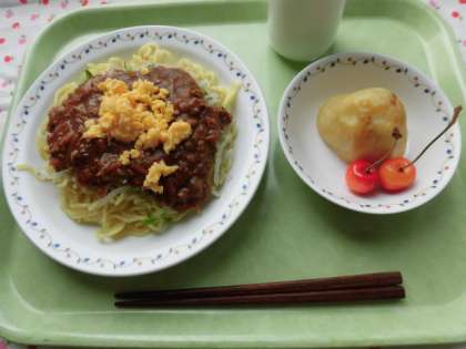 「炒めジャージャーめん」は、中華料理の一つですが、岩手県の盛岡では「じゃじゃめん」として、きしめんやうどんにかけて和風感覚でいただくそうです。暑い時は、キュウリ、もやしなどの野菜は、体温を下げる働きがありますので、今が食べやすい一品です。