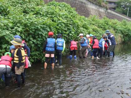 先日、水辺のガサガサを行いました。実際に川に入って生き物を捕まえたり、ゲストティーチャーのお話を聞いたりして、水辺の生き物について知ることができました。