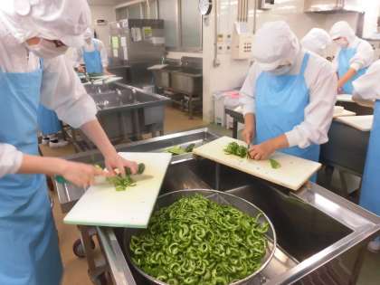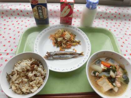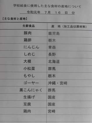 毎月19日は食育の日です。この日は給食はありませんので、本日、沖縄県の郷土料理にチャレンジしました。梅雨は開けていませんが、暑い時は暑い地方の料理に見習い、ゴーヤーチャンプルーです。チャンプルーとは、沖縄の方言で色々な食材と混ぜ合わせる。という意味があるようです。ゴーヤーの白いワタの部分には、ビタミンCが多く含まれ、苦味成分は夏バテ予防効果があるようです。