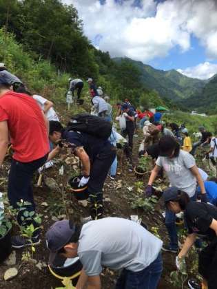 植えた後、みんなで振り返りの会を行いました。児童からは、「初めて植樹したが、穴を掘るのが大変だった。大きくなるのが楽しみ。」や「自分の植えた1本が、森になったらうれしい。」などが、出されました。