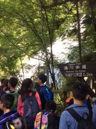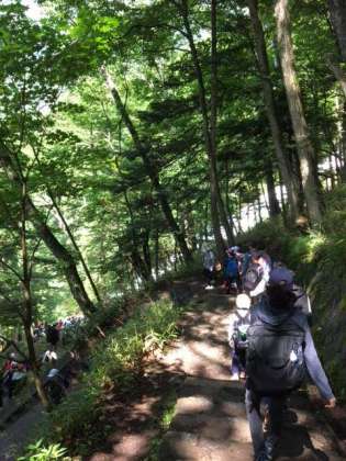 湯滝に着きました。グループ写真を撮り、トイレ休憩です。