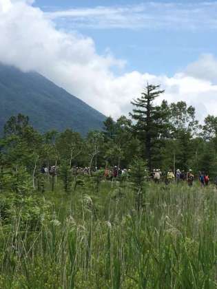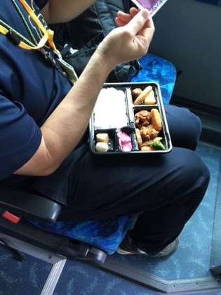 戦場ヶ原を歩いたあと、予定を少し変更して、赤沼広場近くの駐車場、バスの中でお弁当を食べました。