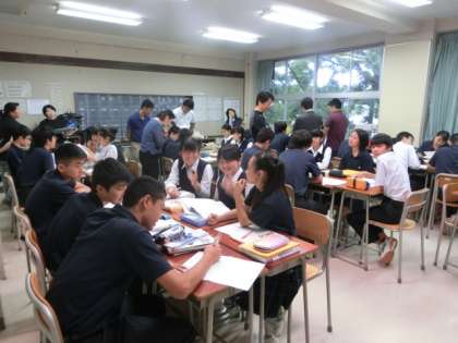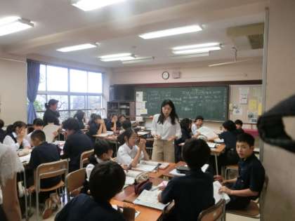 砧南小の卒業生が多く、廊下で出会った生徒たちのさわやかな挨拶が印象的でした。