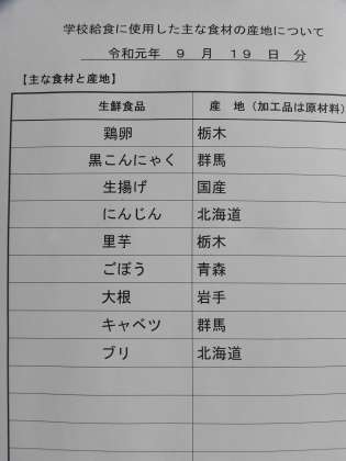 9月19日の給食
