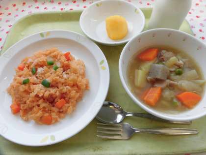 デザートは柿です。今年初めて登場します。ビタミンCやカロテンが多いので風邪予防をしてくれます。