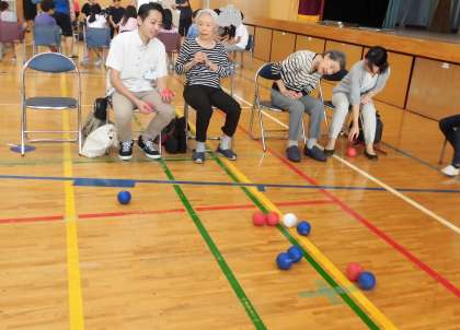 10月5日土曜日に地域の方々を交えてボッチャ大会を行いました。パラリンピックの競技種目であるボッチャは、ジャックボール(白い球)に自分のボールを近づけるという、シンプルながら頭を使う奥深いスポーツです。地域の方々との白熱した戦いが見られ、多いに盛り上がりました。