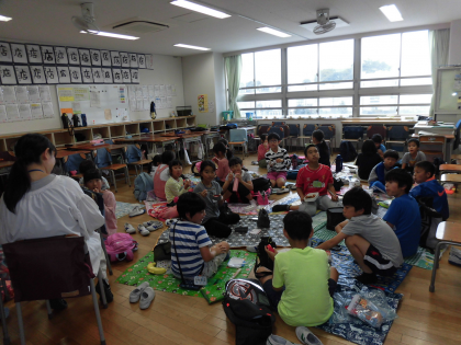 今日は、雨天で砧公園に行くことができなかったため、4時間目にペア学年との交流(教室遊び)を行いました。